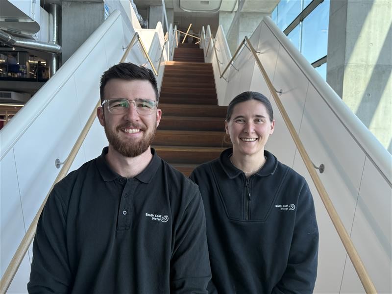 Photo 1: South East Water Network Technician Ethan Mansfield and Sewerage Operations Technician Nikita Woods.