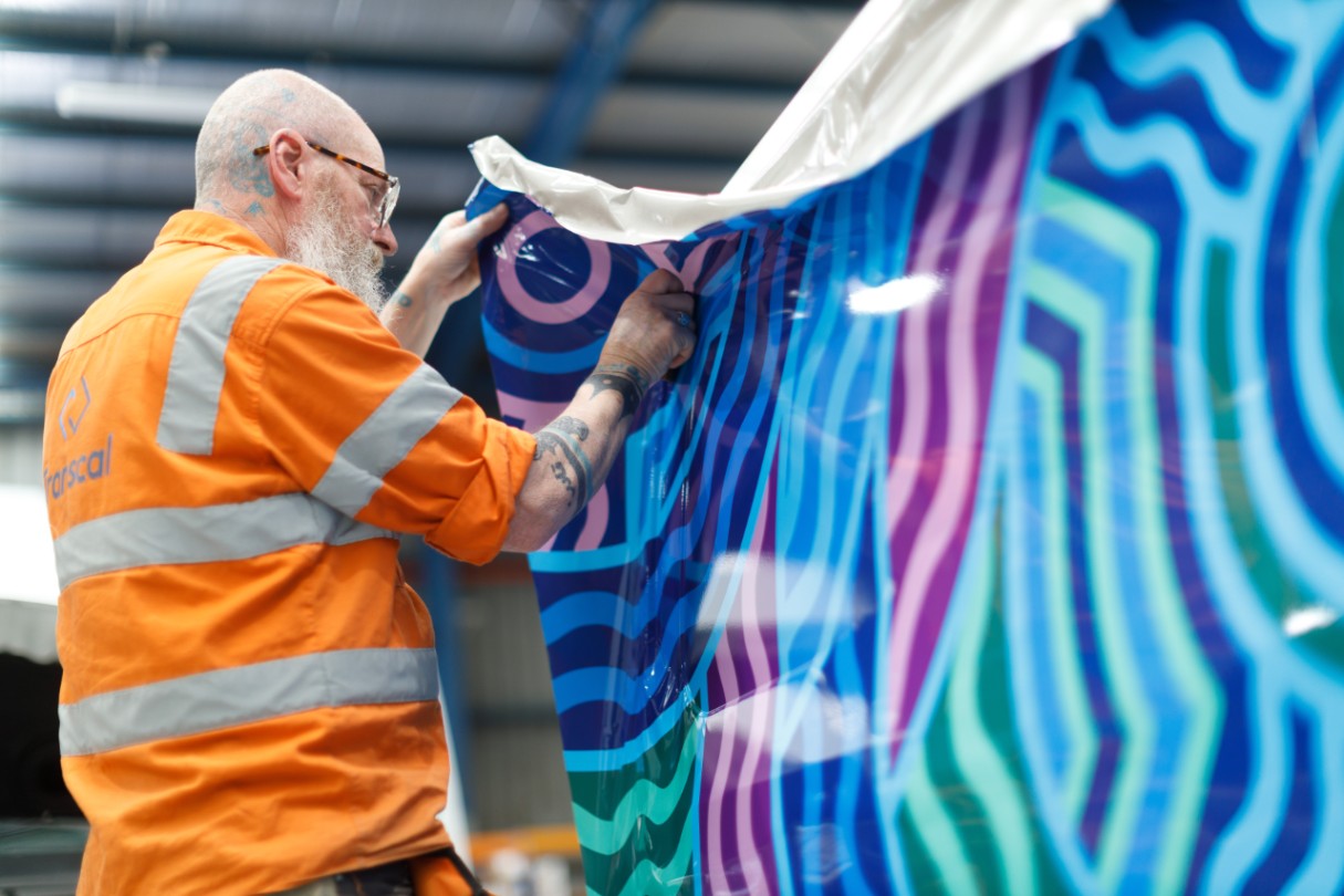 Photo 2: South East Water digital metering van being wrapped with new Aboriginal artwork.