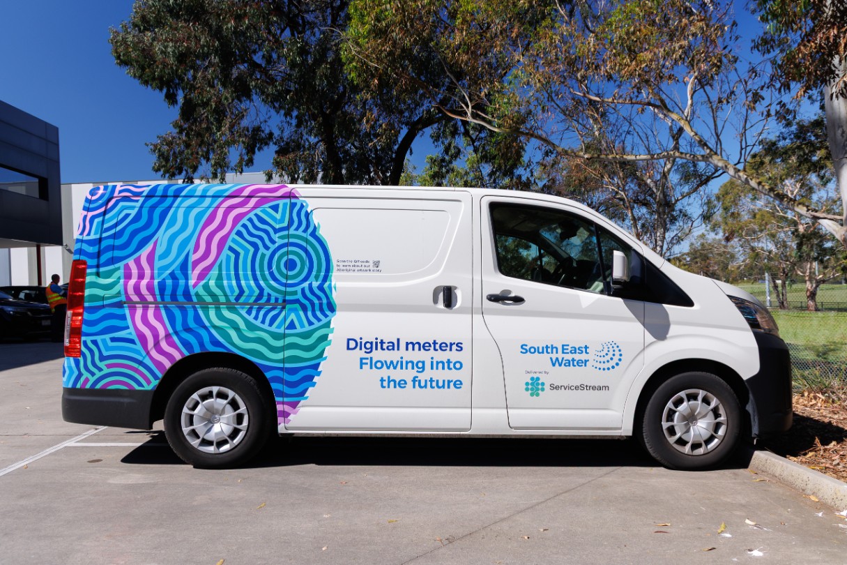 Photo 3: South East Water digital metering van wrapped with Aboriginal artwork.