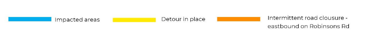 • Intermittent Road clousures eastbound on Robinsons Road - detour via Golf Links Road