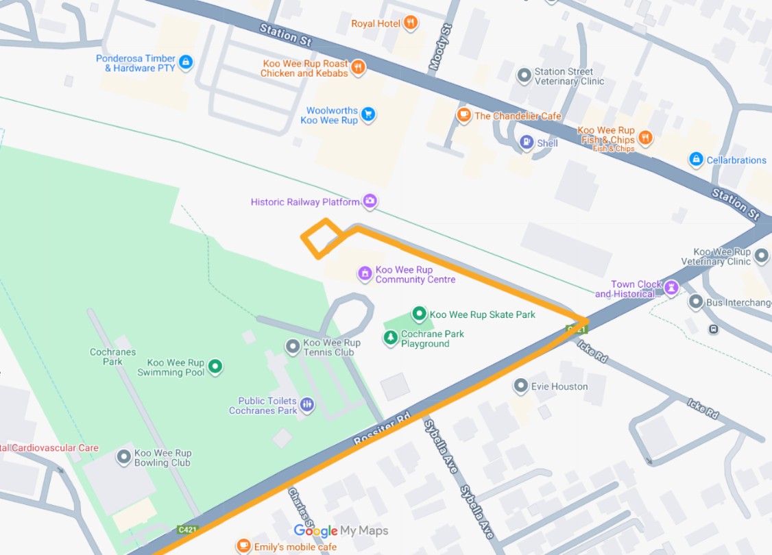 Orange legend icon  ​Truck Route to manhole on The Avenue of Honour, Koo Wee Rup