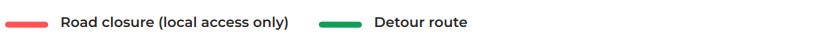 • Full road closure between work areas. We'll be in touch with affected residents. Local access will be maintained but you might have to enter from one end of Pillars Road depending on your property location.
